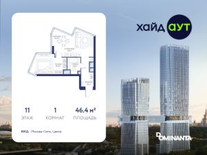 Прямая продажа от застройщика! Продается 1-комнатная квартира площадью 46.4 кв.м. на 11-м этаже 34-этажного дома в жилом комплексе ХАЙДАУТ с панорамными видами: Москва-Сити, Центр. Высота потолков 3,25 м. В проекте действуют привлекательные условия покупки: скидка до 20% при оплате одним платежом (в том числе ипотека). Предложение действует до 30.04.2026