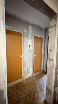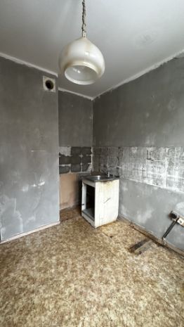 Квартира подготовлена к ремонту новых жильцов- экономия время и средств на демонтаж покрытий. На полу остановлен линолеум для укладки напольных покрытий без выравнивания, стены подготовлены к дальнейшей обработки.