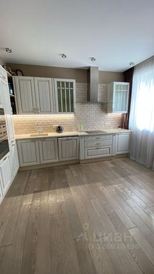 На полу уложена инженерная доска, обои немецкие Marburg и американские Eco Chic, премиальная краска, хорошая кухня с встроенной техникой smeg, сантехника Villeroy & Boch, душевая панель в ванной, гидромассажная панель в душевой.