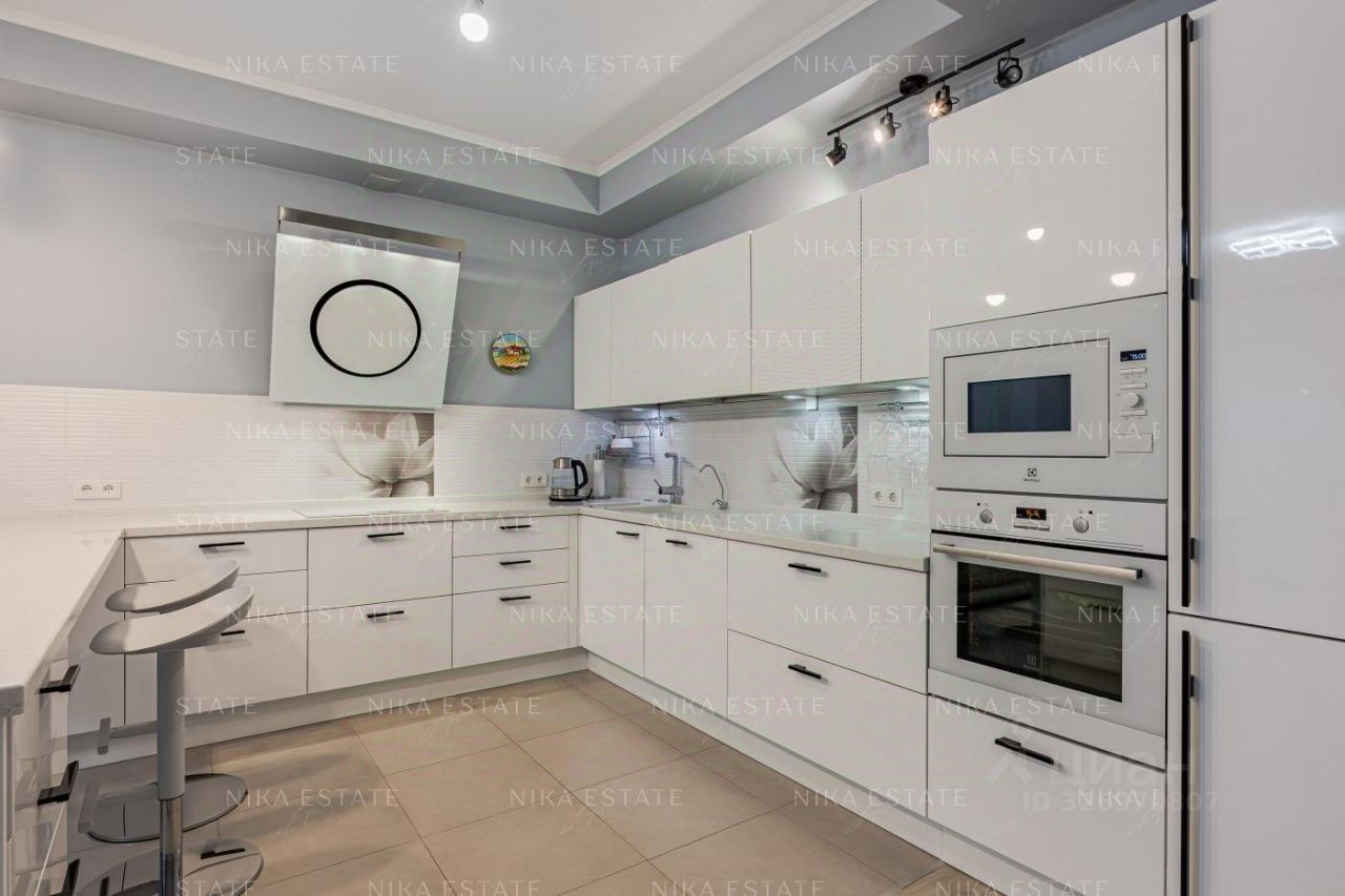 Продуманная планировка включает кухню-столовую, объединённую с гостиной, спальню, кабинет, гардеробную и два санузла. Окна выходят в тихий благоустроенный двор, что обеспечивает приватность и комфортное проживание в самом центре города.