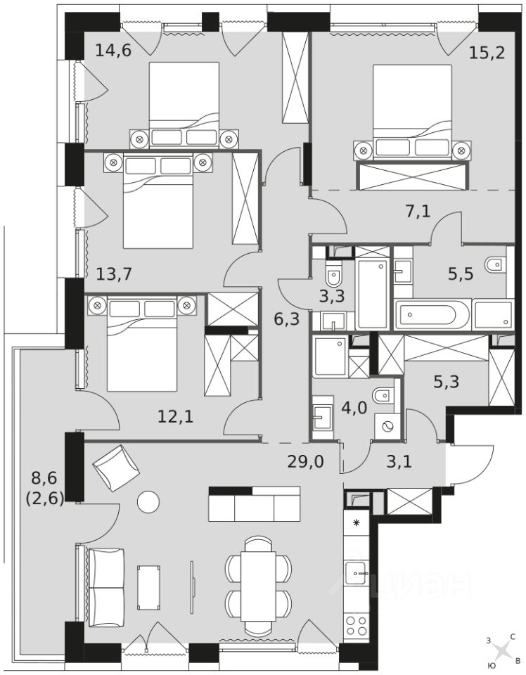 - Мастер-зона с санузлом. Уют и комфорт в одном пространстве.