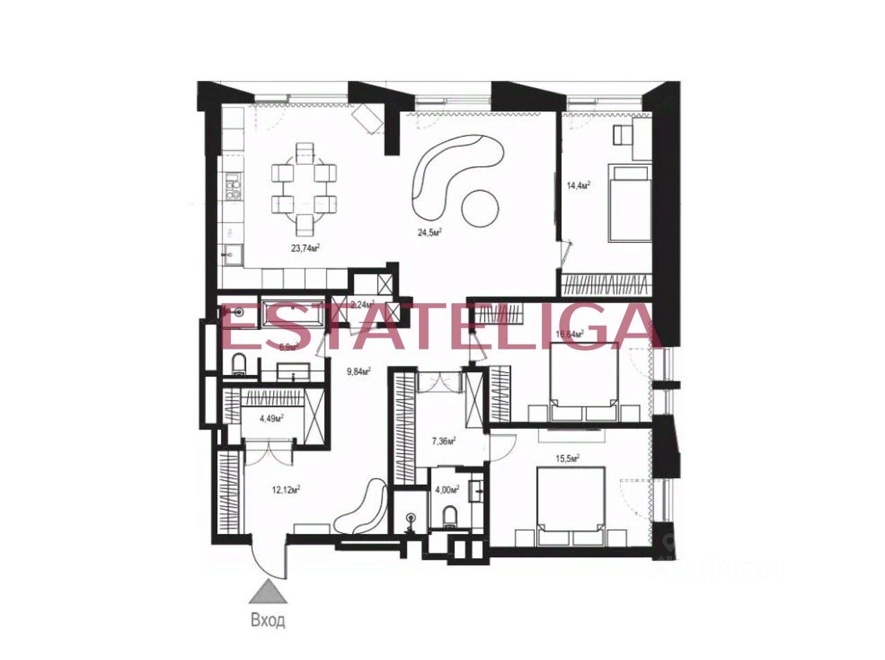 Квартира представляет собой свободную планировку, которая позволяет спланировать: просторную кухню-гостиную-столовую, прихожую, полноценную мастер-спальню, гардеробную зону, спальню и 2 гостевых с/у или кладовую и постирочную.