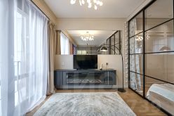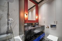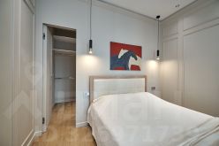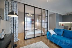 - изолированная спальня с прозрачной раздвижной перегородкой и скрытой гардеробной комнатой;