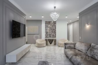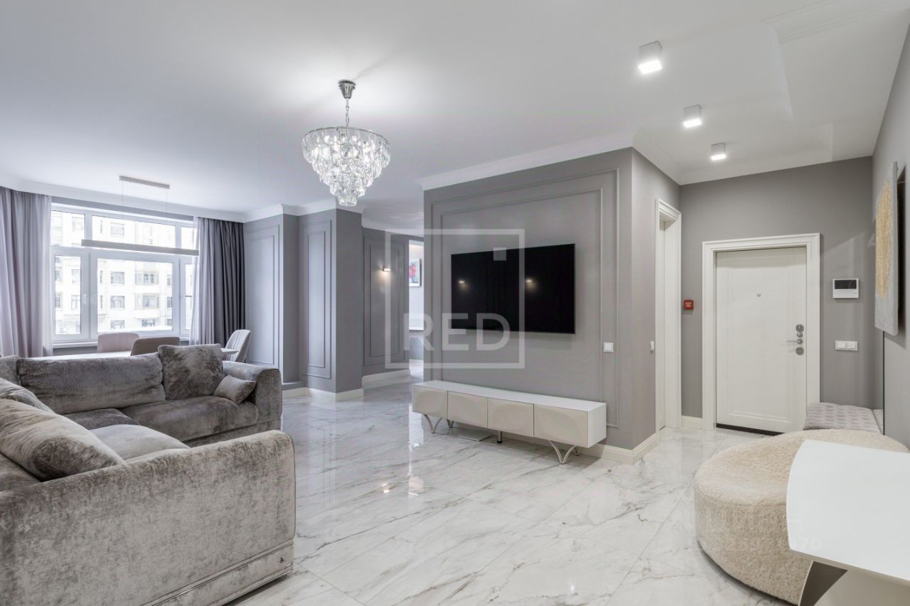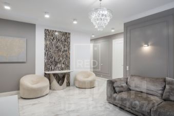 В квартире выполнен дизайнерский ремонт из качественных и дорогих материалов. Встроенная кухонная электротехника (посудомоечная машинка, холодильник, индукционная плита, микроволновая печь, духовой шкаф) бренда Neff. Сантехника и сантехническая арматура премиальных производителей Villeroy & Boch и hansgrohe. Немецкая фурнитура розеток и выключателей премиального сегмента Jung.