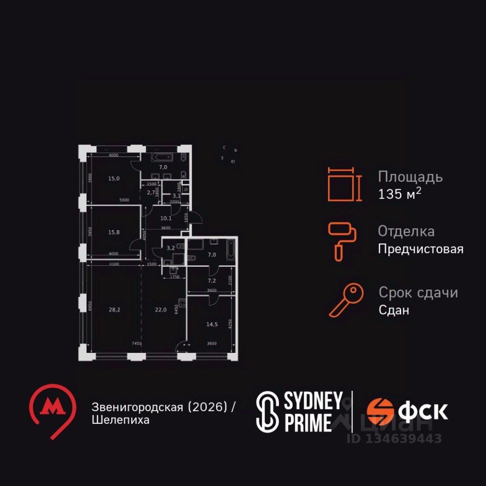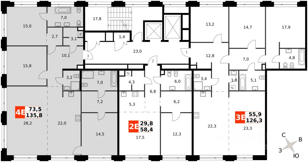 Продаётся 4-к квартира номер 30 общей площадью 135.8 кв.м. на 3-м этаже 8 этажного здания. Отделка Whitebox. Цена с учётом скидки.