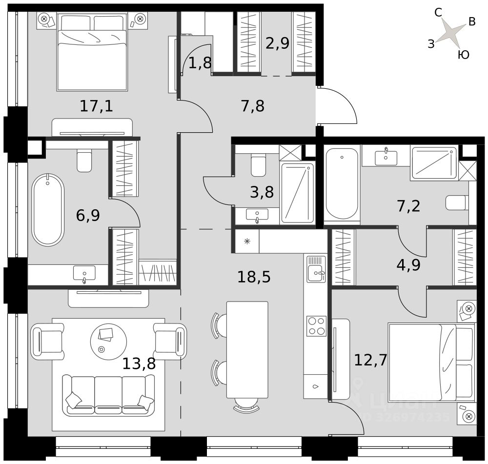 - Евроформат - просторное и удобное жилье с отличной планировкой.