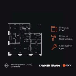 Продаётся 3-к квартира номер 3 общей площадью 97.4 кв.м. на 2-м этаже 9 этажного здания. Предчистовая отделка. Цена с учётом скидки.