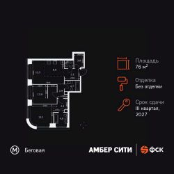 Продаётся 3-к квартира номер 98 общей площадью 76.8 кв.м. на 8-м этаже 46 этажного здания. Без отделки. Цена с учётом скидки.