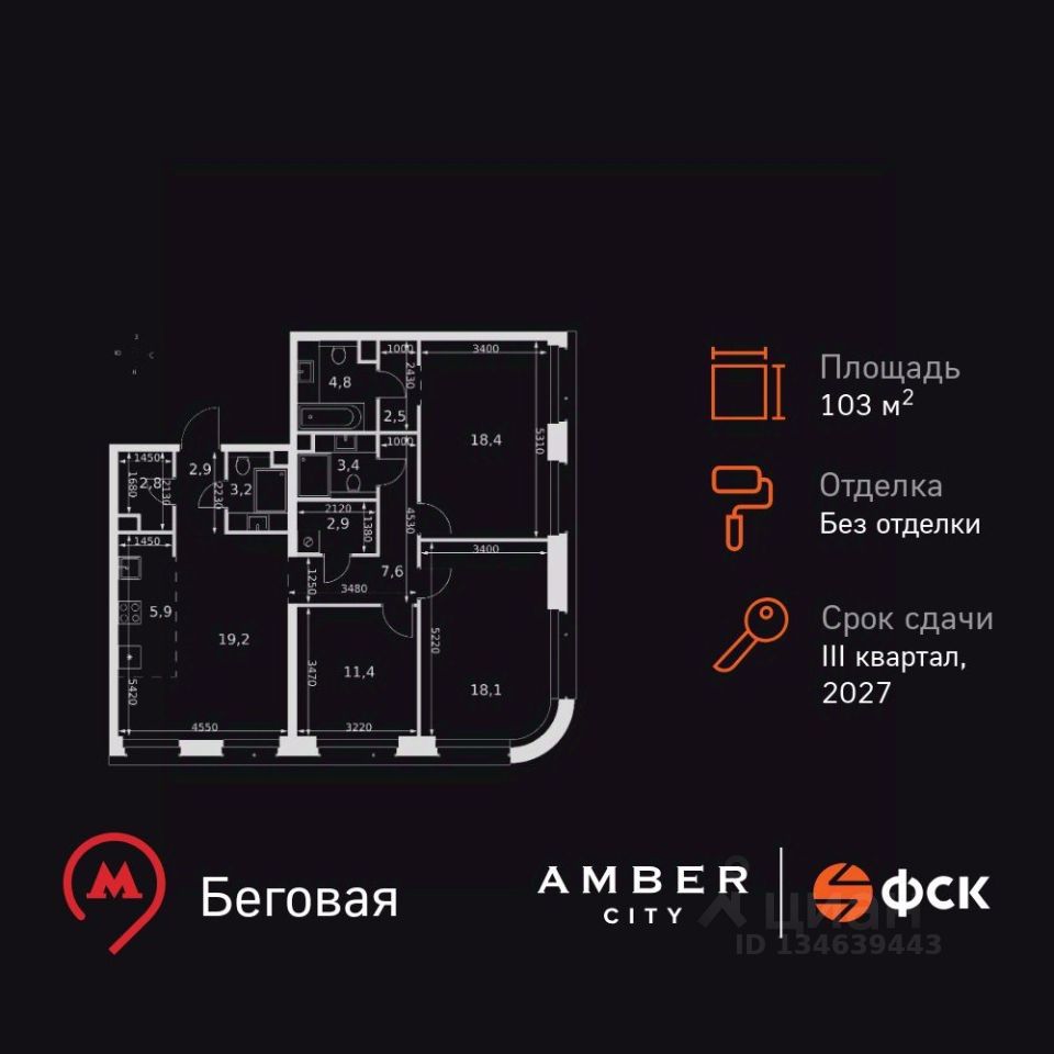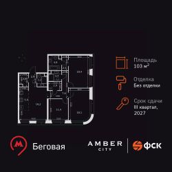 Продаётся 4-к квартира номер 529 общей площадью 103.1 кв.м. на 38-м этаже 46 этажного здания. Без отделки. Цена с учётом скидки.