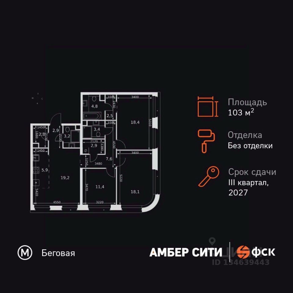 Продаётся 4-к квартира номер 601 общей площадью 103.1 кв.м. на 44-м этаже 46 этажного здания. Без отделки. Цена с учётом скидки.