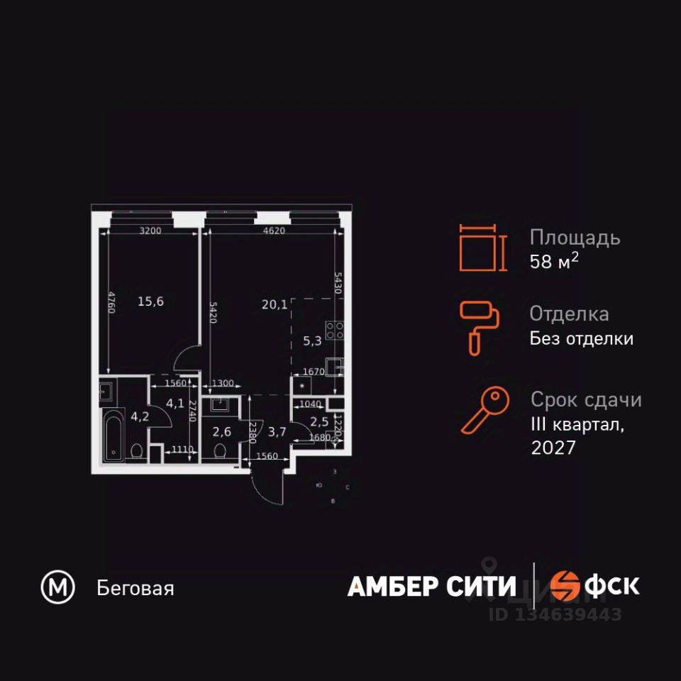 Продаётся 2-к квартира номер 610 общей площадью 58.1 кв.м. на 44-м этаже 46 этажного здания. Без отделки. Цена с учётом скидки.