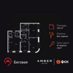 Продаётся 4-к квартира номер 577 общей площадью 103.1 кв.м. на 42-м этаже 46 этажного здания. Без отделки. Цена с учётом скидки.