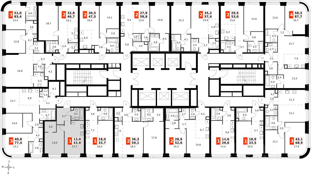 Продаётся 1-к квартира номер 277 общей площадью 43.9 кв.м. на 20-м этаже 46 этажного здания. Отделка Whitebox. Цена с учётом скидки.