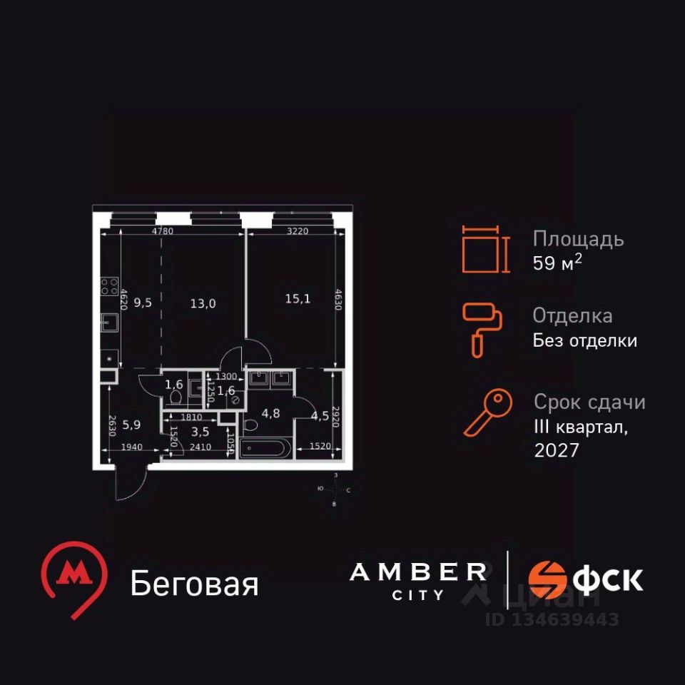 - Станция метро "Беговая" - 5 минут пешком