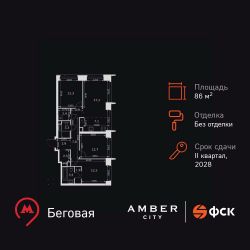 Продаётся 4-к квартира номер 779 общей площадью 86 кв.м. на 12-м этаже 57 этажного здания. Без отделки. Цена с учётом скидки.