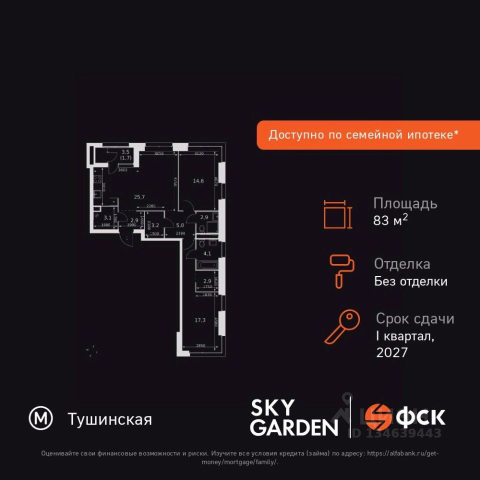 Продаётся 3-к квартира номер 101 общей площадью 83.4 кв.м. на 22-м этаже 44 этажного здания. Без отделки. Цена с учётом скидки.