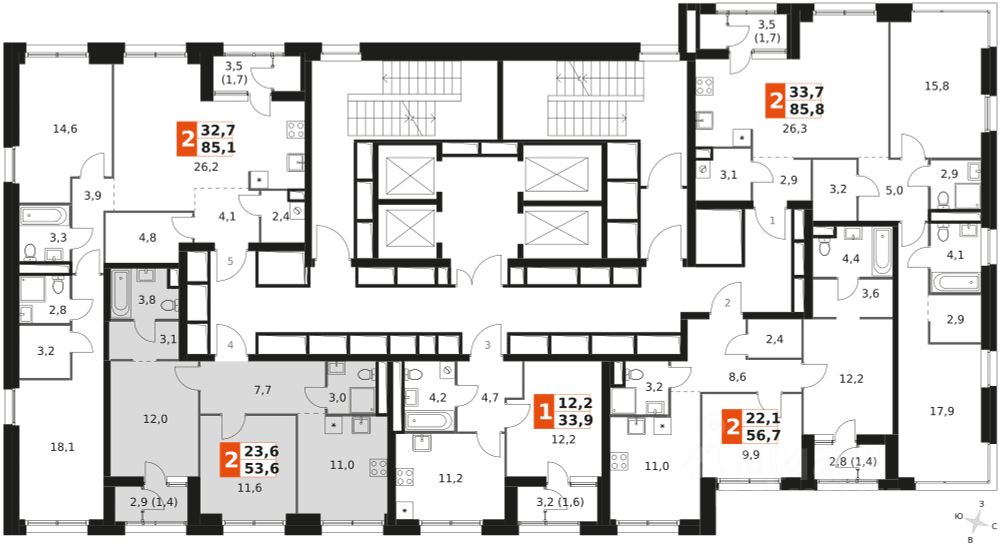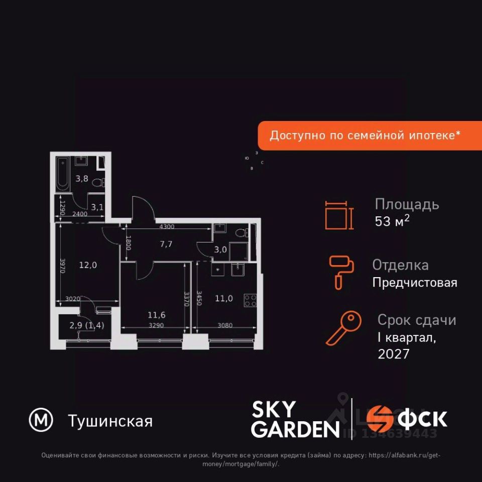 Продаётся 2-к квартира номер 209 общей площадью 53.6 кв.м. на 43-м этаже 44 этажного здания. Предчистовая отделка. Цена с учётом скидки.