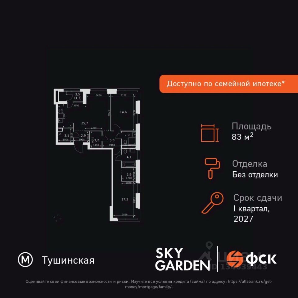 Продаётся 3-к квартира номер 196 общей площадью 83.4 кв.м. на 41-м этаже 44 этажного здания. Без отделки. Цена с учётом скидки.