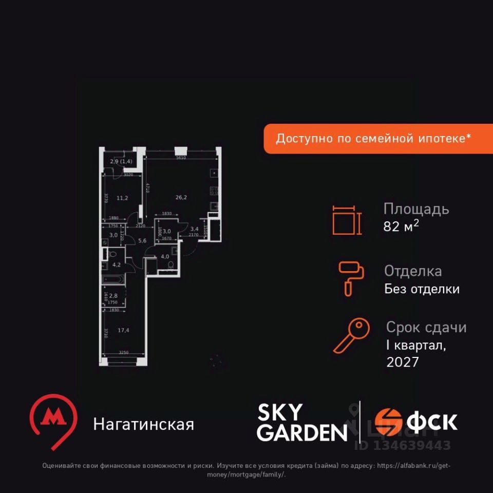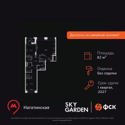 Продаётся 3-к квартира номер 219 общей площадью 82.2 кв.м. на 2-м этаже 31 этажного здания. Без отделки. Цена с учётом скидки.