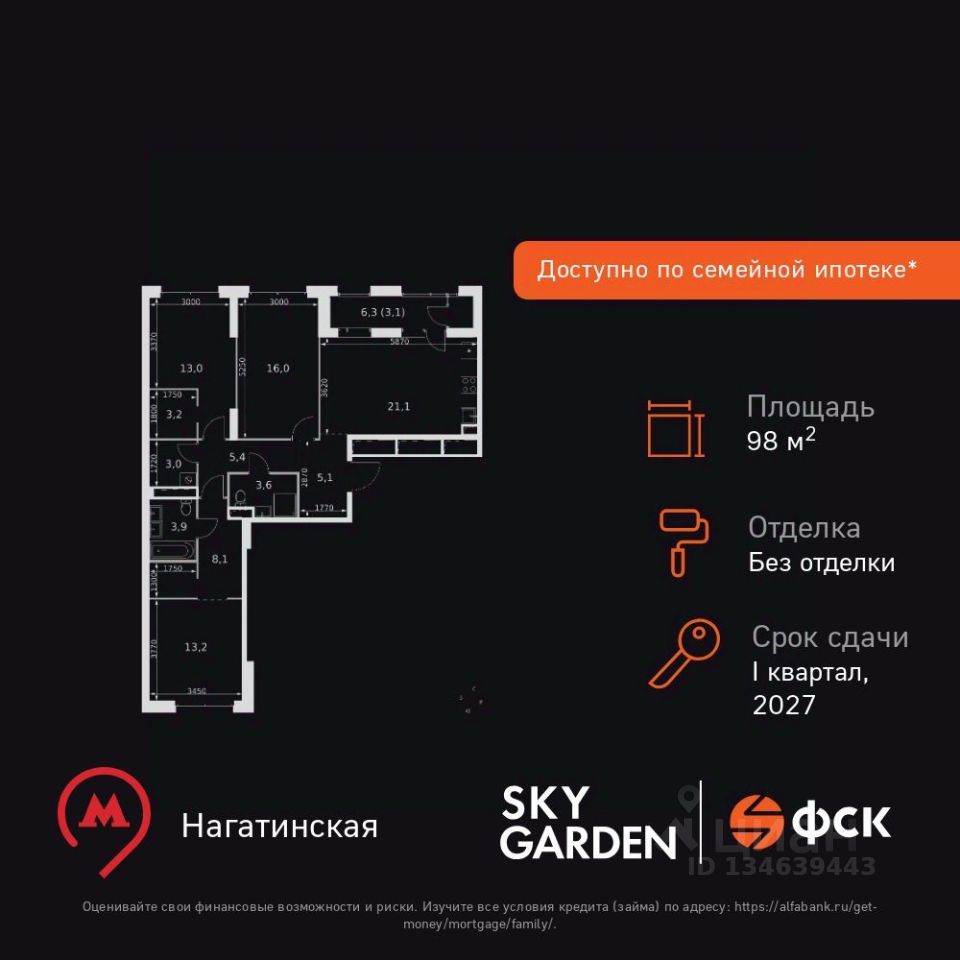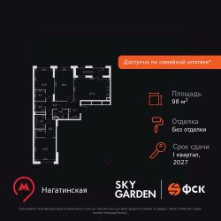 Продаётся 3-к квартира номер 503 общей площадью 98.7 кв.м. на 22-м этаже 26 этажного здания. Без отделки. Цена с учётом скидки.