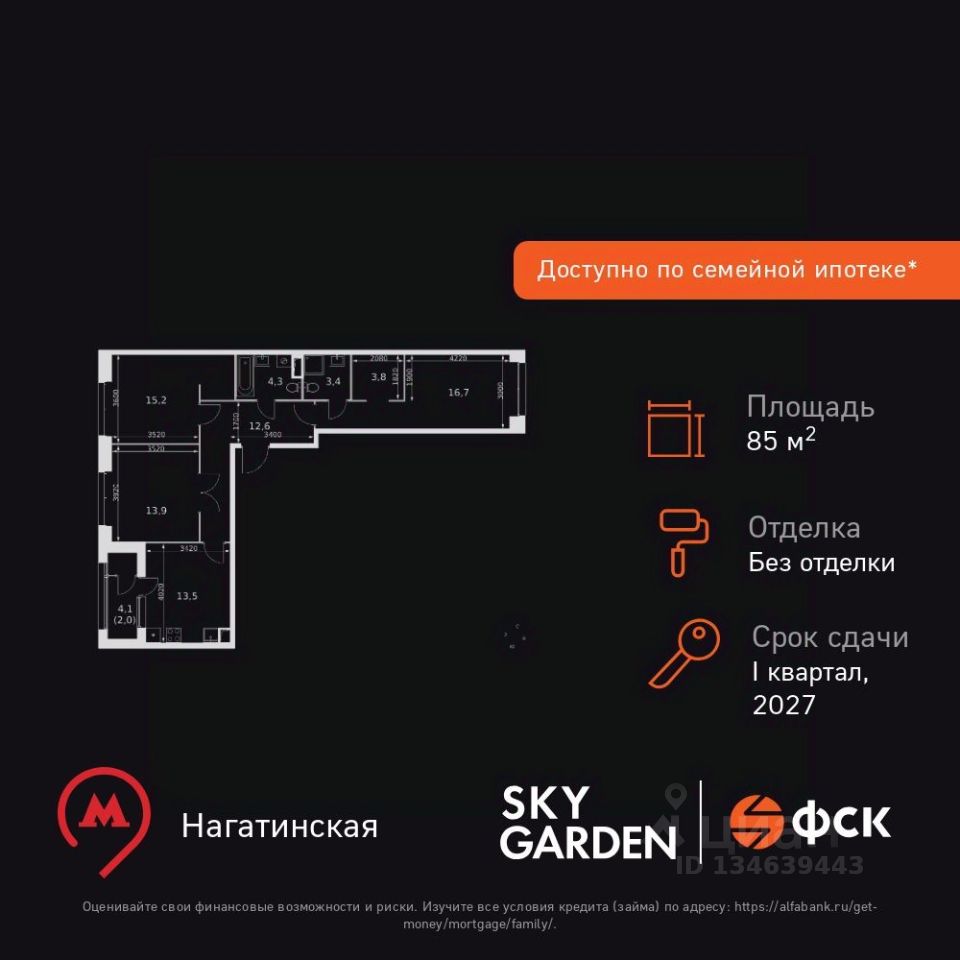 Продаётся 4-к квартира номер 336 общей площадью 85.4 кв.м. на 2-м этаже 26 этажного здания. Без отделки. Цена с учётом скидки.