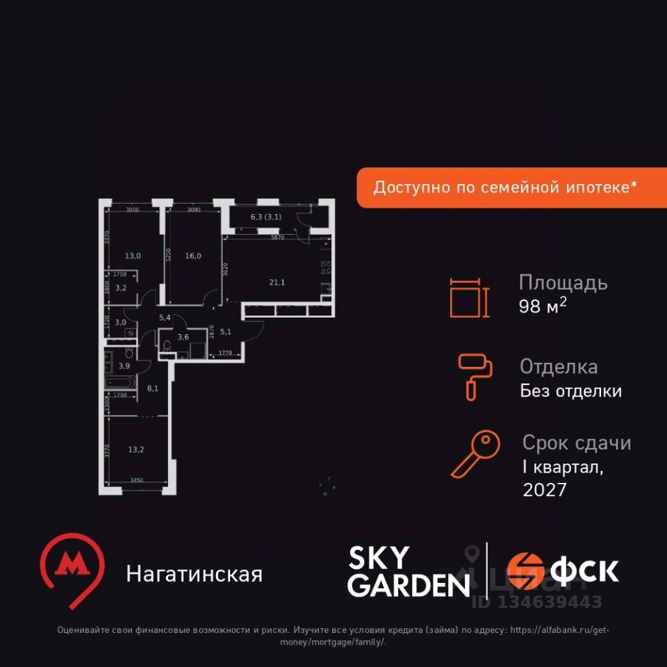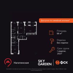 Продаётся 3-к квартира номер 455 общей площадью 98.7 кв.м. на 16-м этаже 26 этажного здания. Без отделки. Цена с учётом скидки.