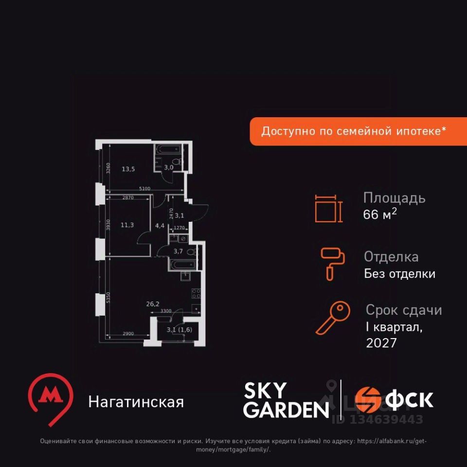Продаётся 3-к квартира номер 635 общей площадью 66.8 кв.м. на 18-м этаже 44 этажного здания. Без отделки. Цена с учётом скидки.