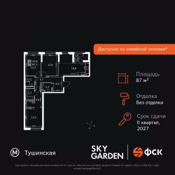 Продаётся 3-к квартира номер 64 общей площадью 87.3 кв.м. на 9-м этаже 29 этажного здания. Без отделки. Цена с учётом скидки.