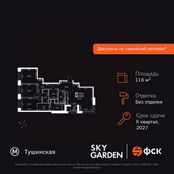 Продаётся 3-к квартира номер 239 общей площадью 116.3 кв.м. на 4-м этаже 44 этажного здания. Без отделки. Цена с учётом скидки.