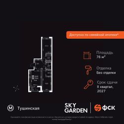 Продаётся 2-к квартира номер 322 общей площадью 76.4 кв.м. на 15-м этаже 44 этажного здания. Без отделки. Цена с учётом скидки.