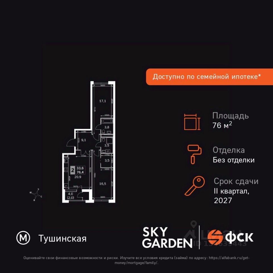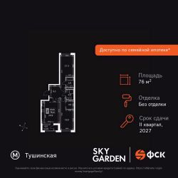 Продаётся 2-к квартира номер 294 общей площадью 76.4 кв.м. на 11-м этаже 44 этажного здания. Без отделки. Цена с учётом скидки.
