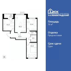 Продаётся 3-к квартира номер 141 общей площадью 76.4 кв.м. на 11-м этаже 14 этажного здания. Предчистовая отделка. Цена с учётом скидки.