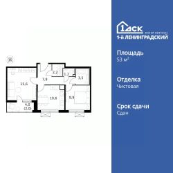 Продаётся 2-к квартира номер 178 общей площадью 53.2 кв.м. на 7-м этаже 14 этажного здания. Чистовая отделка. Цена с учётом скидки.