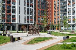 В квартале созданы уютные дворики для детских игр и отдыха взрослых. Детские зоны отделены от взрослых, а спортивные площадки вынесены за пределы дворов. Все зоны обустроены с использованием экологичных материалов, а игровое оборудование разработано с участием детских психологов.