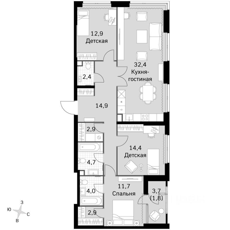 - Гибкая планировка - создайте пространство по своему вкусу.