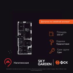 Продаётся 4-к квартира номер 292 общей площадью 103.7 кв.м. на 43-м этаже 43 этажного здания. Предчистовая отделка. Цена с учётом скидки.