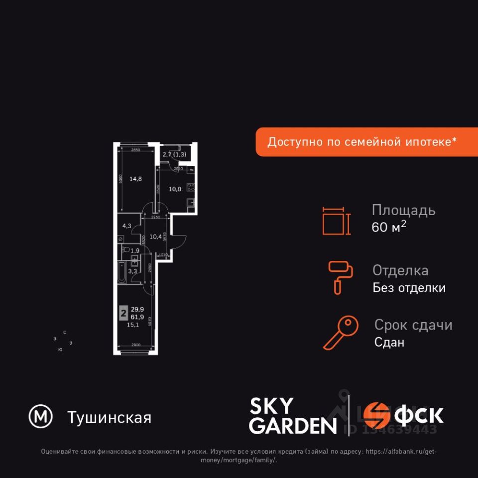 Продаётся 2-к квартира номер 394 общей площадью 60.5 кв.м. на 26-м этаже 26 этажного здания. Без отделки. Цена с учётом скидки.