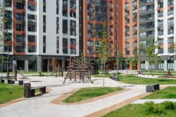 В квартале созданы уютные дворики для детских игр и отдыха взрослых. Детские зоны отделены от взрослых, а спортивные площадки вынесены за пределы дворов. Все зоны обустроены с использованием экологичных материалов, а игровое оборудование разработано с участием детских психологов.