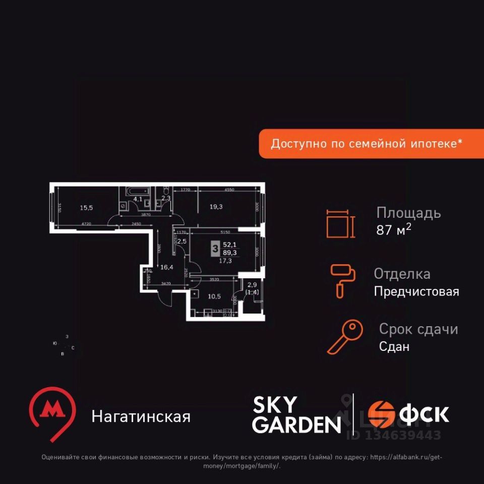 Продаётся 3-к квартира номер 638 общей площадью 87.2 кв.м. на 4-м этаже 43 этажного здания. Отделка Whitebox. Цена с учётом скидки.