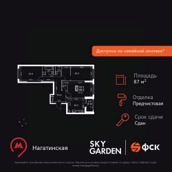 Продаётся 3-к квартира номер 683 общей площадью 87.2 кв.м. на 9-м этаже 43 этажного здания. Предчистовая отделка. Цена с учётом скидки.