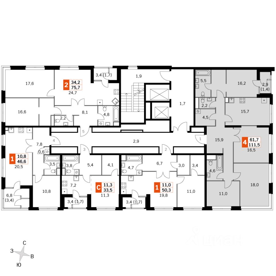 Продаётся 4-к квартира номер 1315 общей площадью 110.4 кв.м. на 24-м этаже 30 этажного здания. Отделка Whitebox. Цена с учётом скидки.