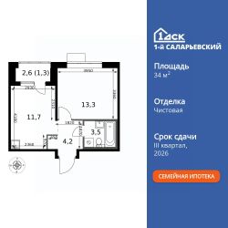 Продаётся 1-к квартира номер 176 общей площадью 34 кв.м. на 22-м этаже 24 этажного здания. Чистовая отделка. Цена с учётом скидки.