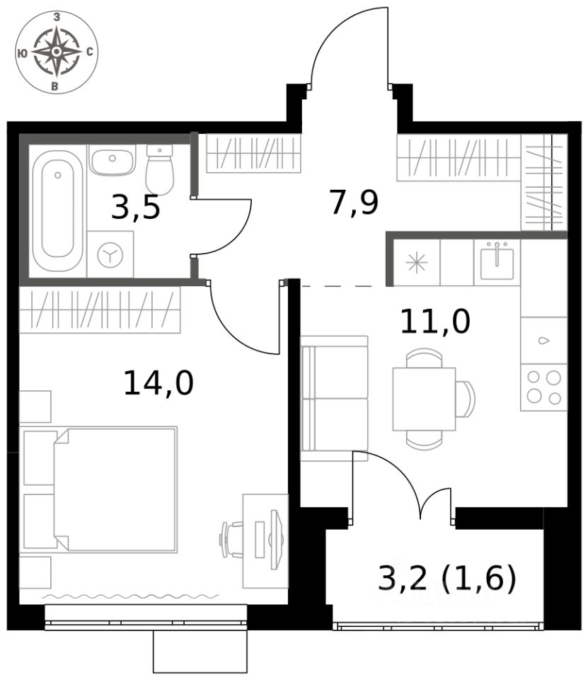 До Ленинского проспекта - 3,2 км