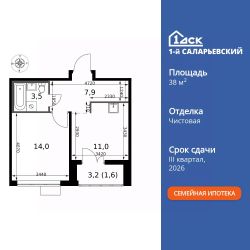 Продаётся 1-к квартира номер 180 общей площадью 38 кв.м. на 23-м этаже 24 этажного здания. Чистовая отделка. Цена с учётом скидки.