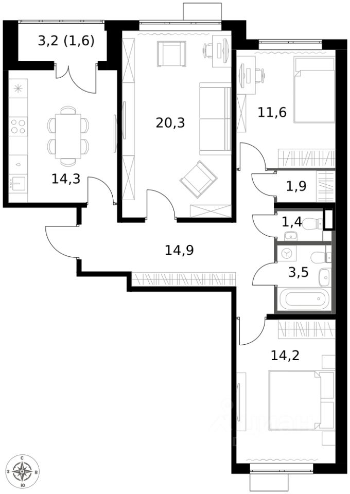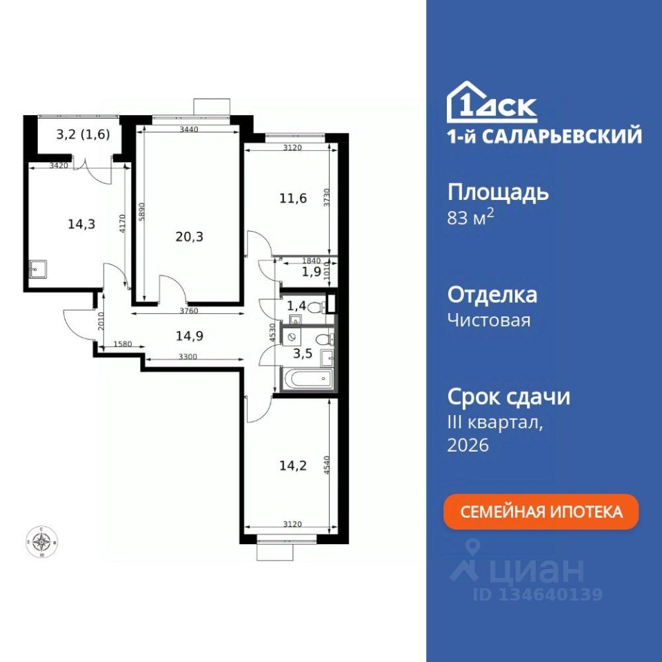 Продаётся 3-к квартира номер 390 общей площадью 83.7 кв.м. на 16-м этаже 16 этажного здания. Чистовая отделка. Цена с учётом скидки.