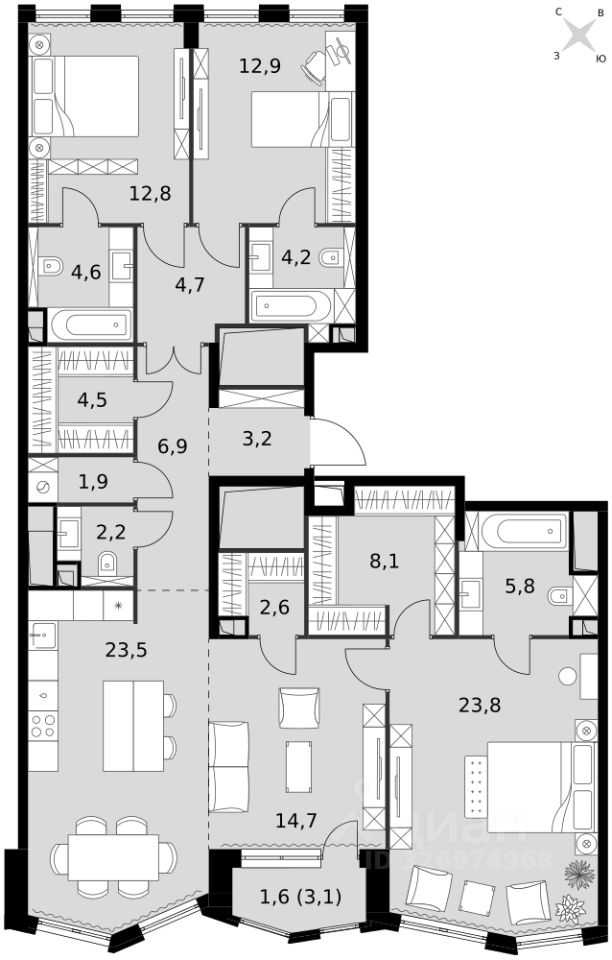 - Мастер-зона с санузлом и гардеробной. Всё для вашего комфорта и удобства, включая личный санузел и гардероб.