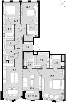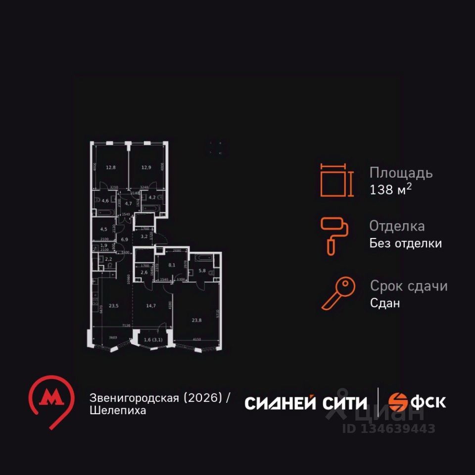 Продаётся 4-к квартира номер 294 общей площадью 138 кв.м. на 26-м этаже 26 этажного здания. Без отделки. Цена с учётом скидки.
