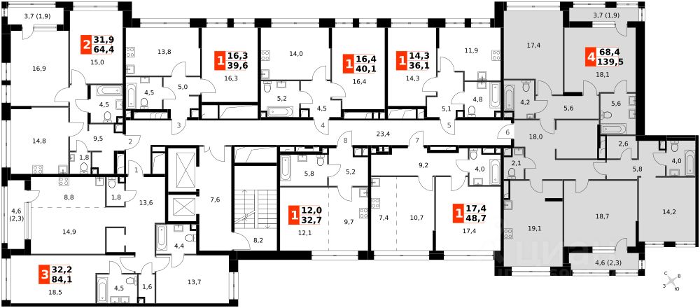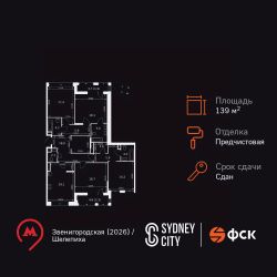 Продаётся 4-к квартира номер 238 общей площадью 139.2 кв.м. на 19-м этаже 20 этажного здания. Отделка Whitebox. Цена с учётом скидки.