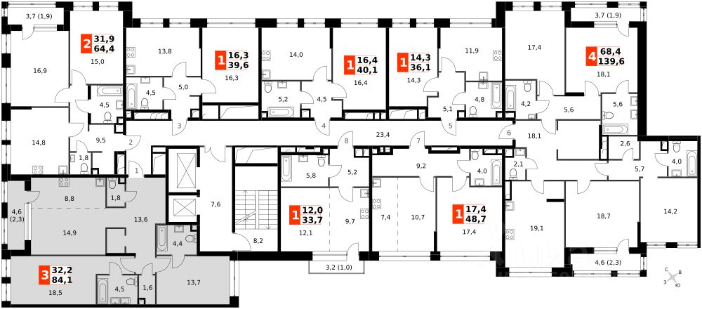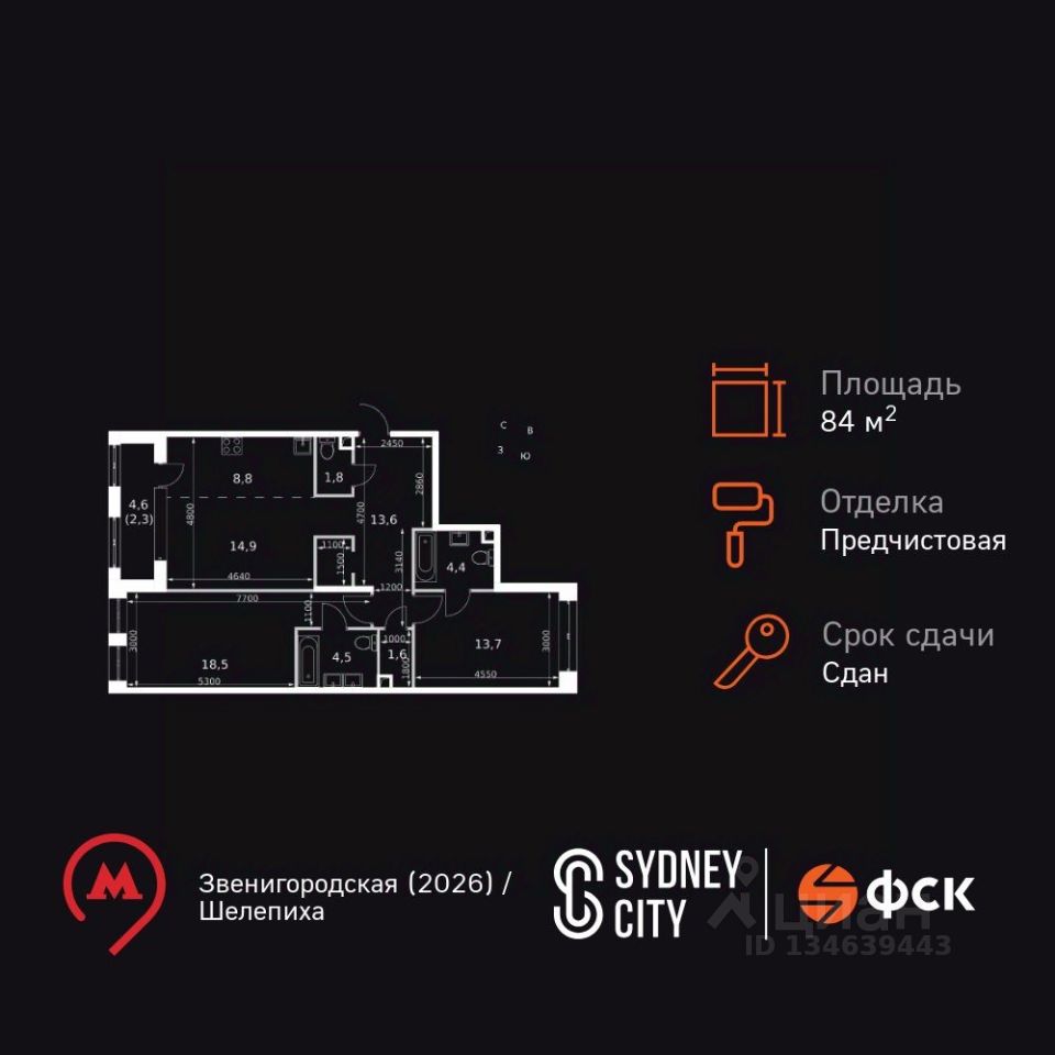 Продаётся 3-к квартира номер 241 общей площадью 84.2 кв.м. на 20-м этаже 20 этажного здания. Отделка Whitebox. Цена с учётом скидки.