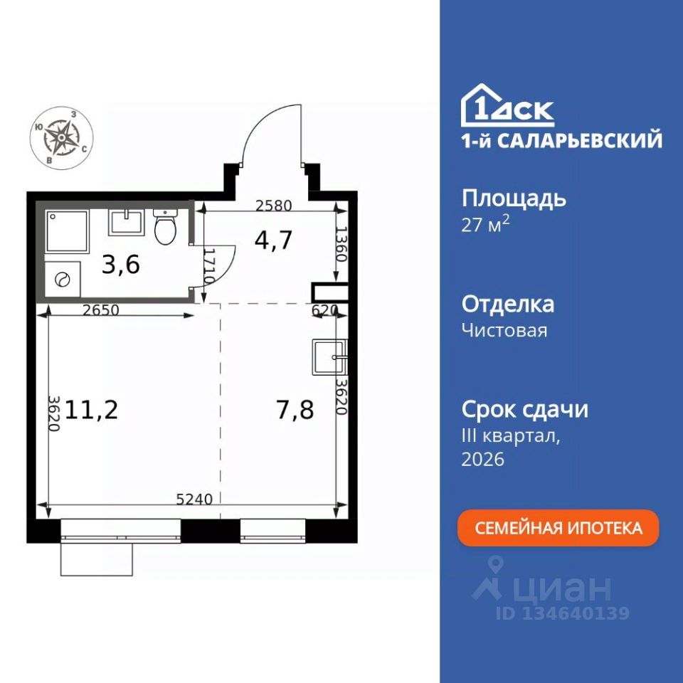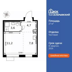 Продаётся квартира-студия номер 670 общей площадью 27.3 кв.м. на 18-м этаже 24 этажного здания. Чистовая отделка. Цена с учётом скидки.